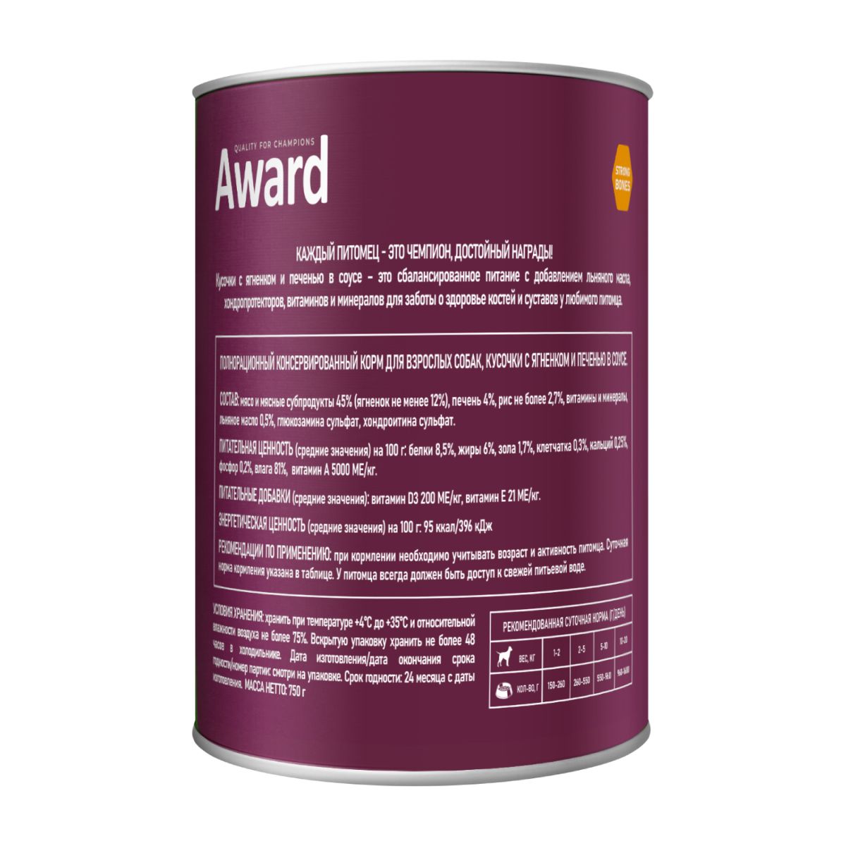 Читать все статьиAWARD д/собак, кусочки с ягненком и печенью 750г