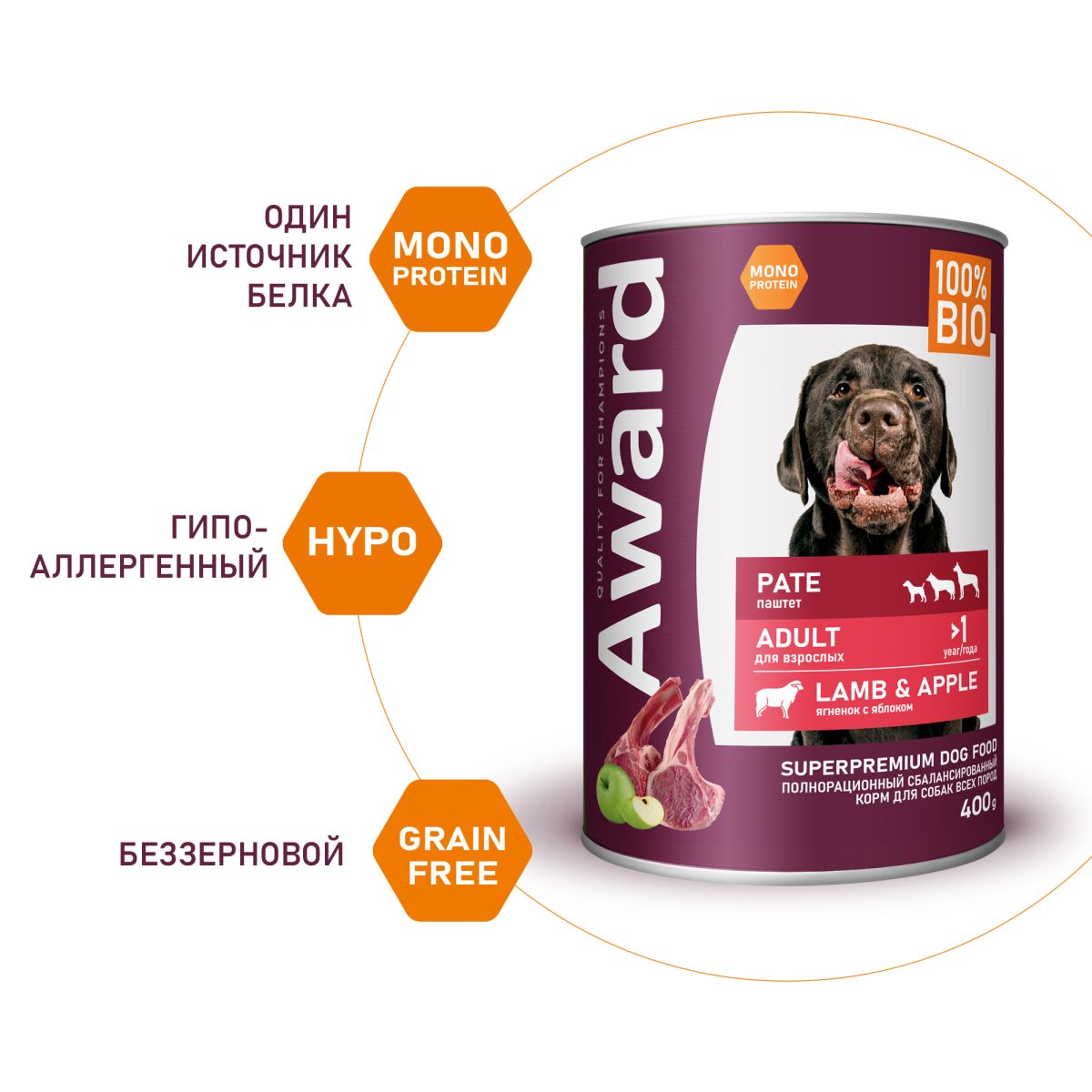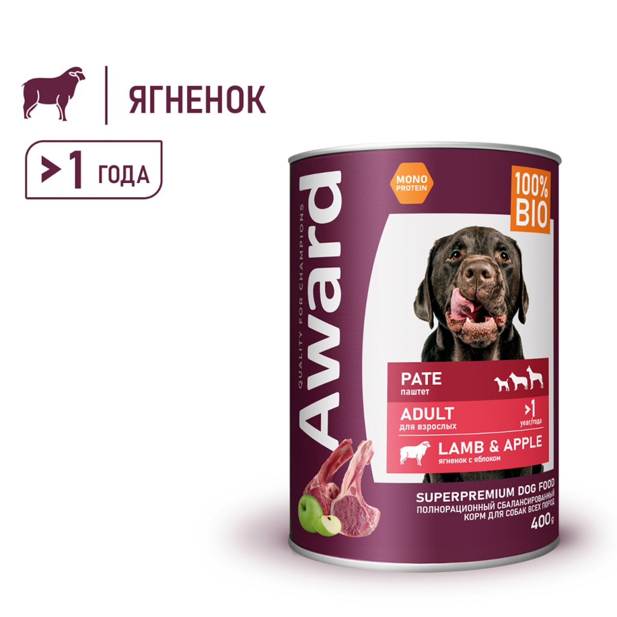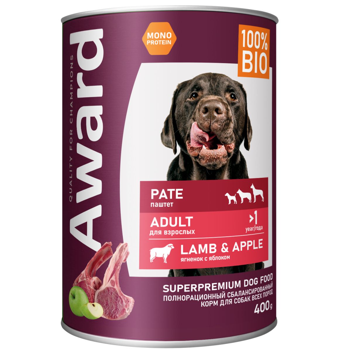 Читать все статьиAWARD д/собак паштет из ягненка с яблоком 400г