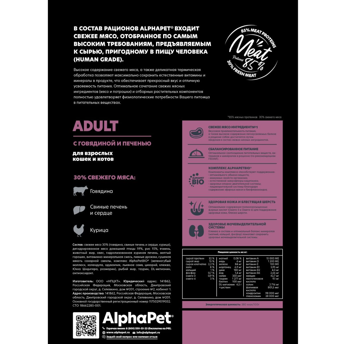 Сухой полнорационный корм с говядиной и печенью для взрослых домашних кошек и котов AlphaPet Superpremium