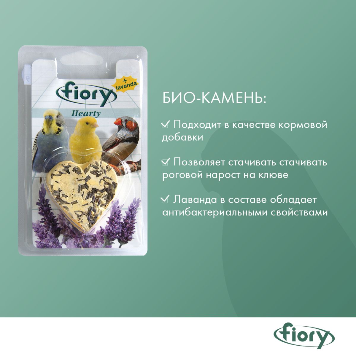 FIORY био-камень в форме сердца для птиц. Минеральный био-камень – важная добавка для всех птиц! Минеральный био-камень позволит вашему попугаю без вреда для здоровья стачивать клюв. В состав био-камня входят 13 различных минералов, которые способствуют укреплению костей,скорлупы яиц и благотворно влияют на организм питомца в целом, такие как кальций, фосфор, натрий, железо, цинк, магний, селен и др. Селен - редкий и ценный антиоксидант, который борется со свободными радикалами, поддерживая антиоксидантную защиту. Био-камень имеет форму сердца, он содержит цветы лаванды, которые обладают антибактериальными свойствами.Степень твердости 75 единиц (параметр SHORE C).Способ применения: прикрепите био-камень внутри клетки, в доступном для птиц месте.Индивидуальная непереносимость компонентов состава.