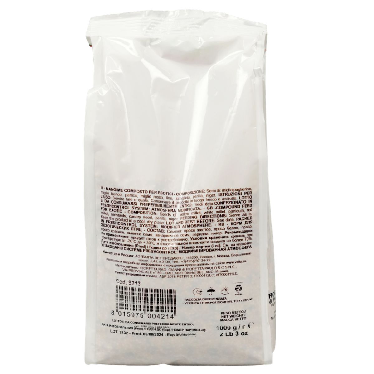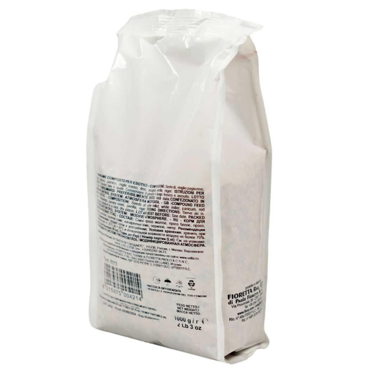 Корм содержит различные семена, обеспечивающие сбалансированный и разнообразный рацион для экзотических птиц. Кроме обычных, общеизвестных семян, в корме используются семена перилла.