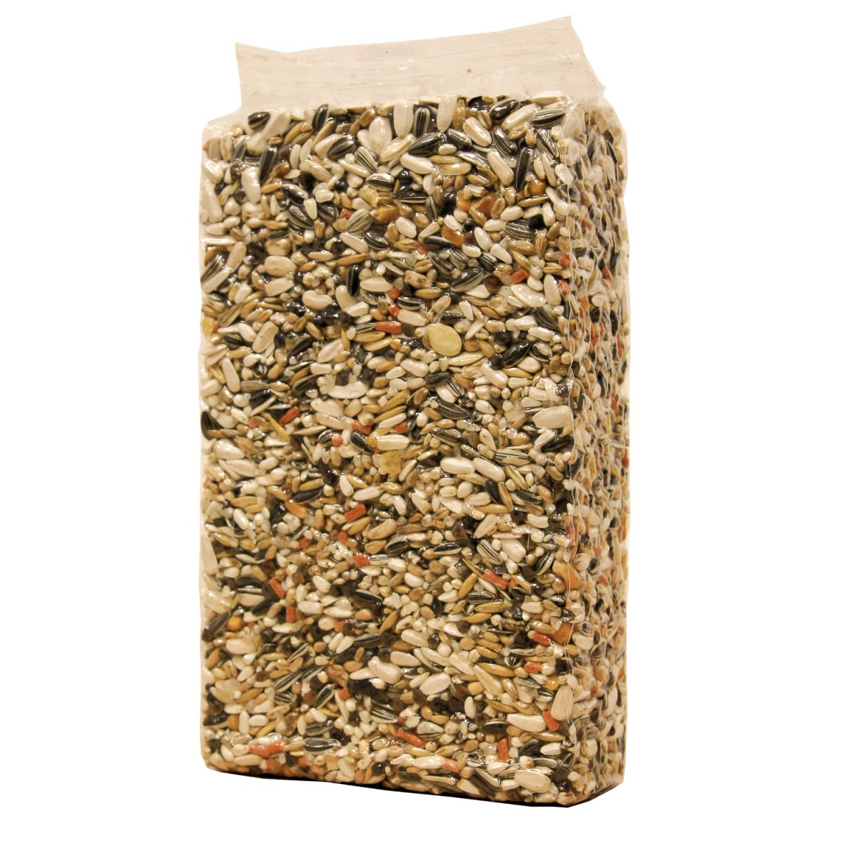 Семена: подсолнечник полосатый, кукуруза, подсолнечник белый, сафлор, пшеница, цельный и очищенный арахис 5%, рис дробленый, ячмень, семена тыквы 4,1%; гранулы (пекарные продукты, злаки и зерновые продукты, мёд 10%, масла, экстракт юкки Шидигера, кр