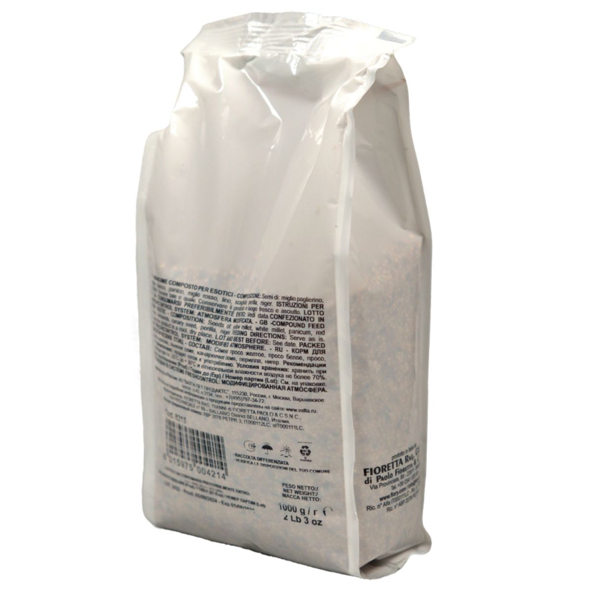 гранулы (конюшенное луговое сено, натуральный ароматизатор), пшеница, гранулы (злаки), кукуруза, подсолнечник полосатый, рожь, гречиха, мангольд кормовой, цельный овёс, ячмень, сафлор, горох, кукурузные хлопья, дробленый рис, семена тыквы, арахис цельный, кэроб.