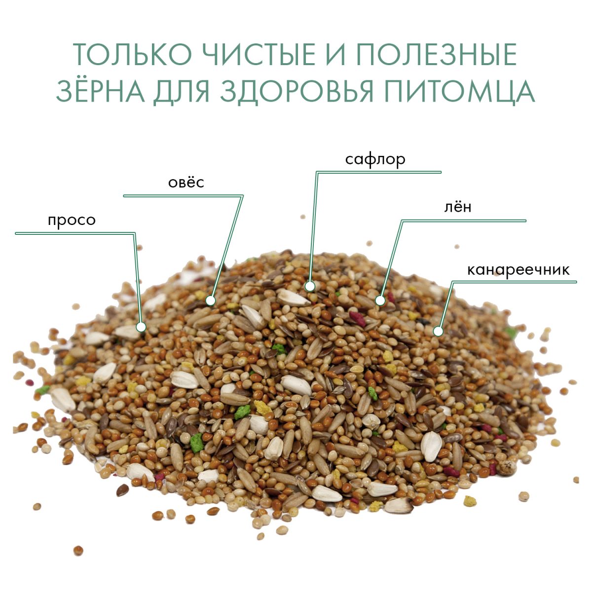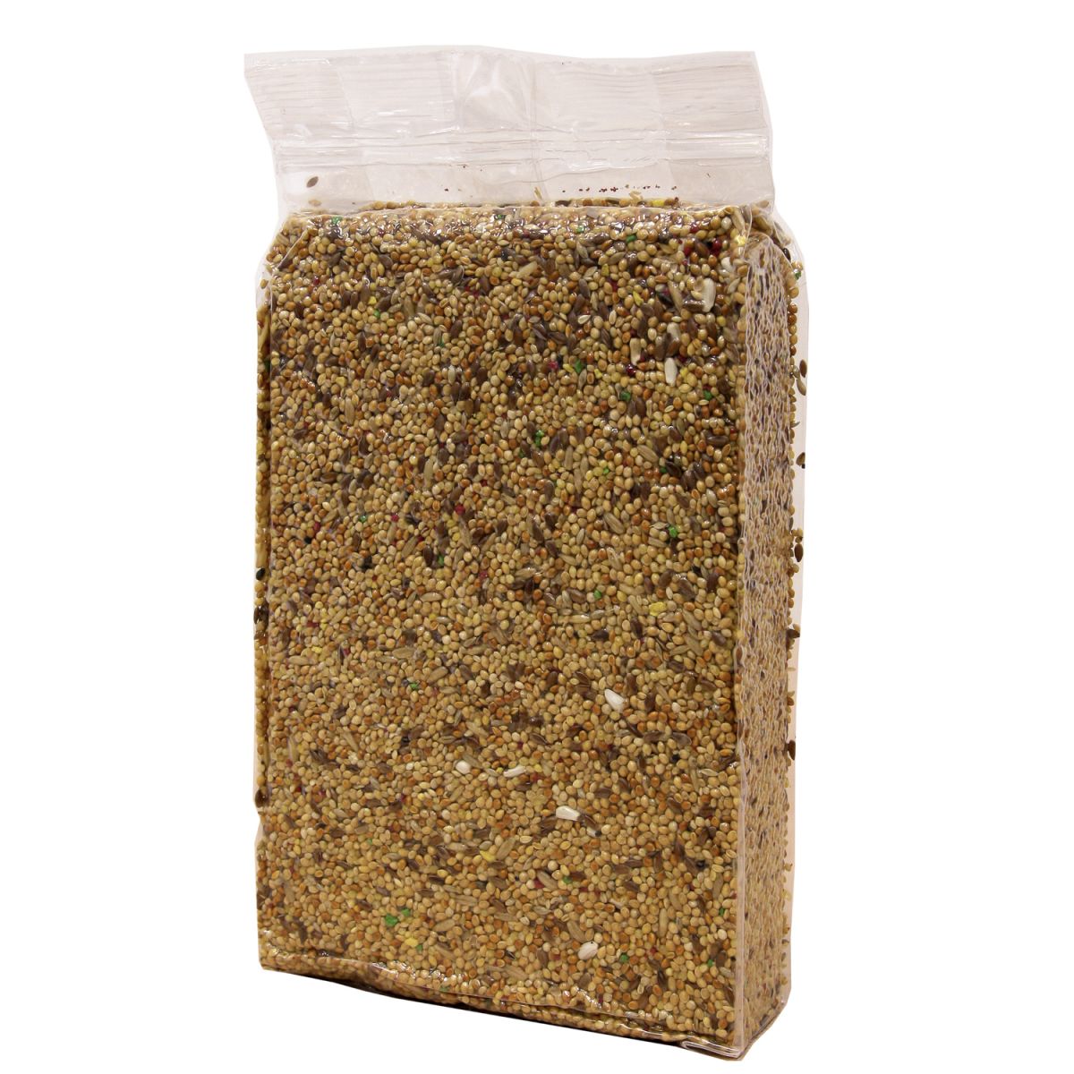 Семена: просо желтое, просо красное, овес очищенный, просо белое, просо обыкновенное, лён, сафлор, канареечник; пекарные продукты.Ингредиенты