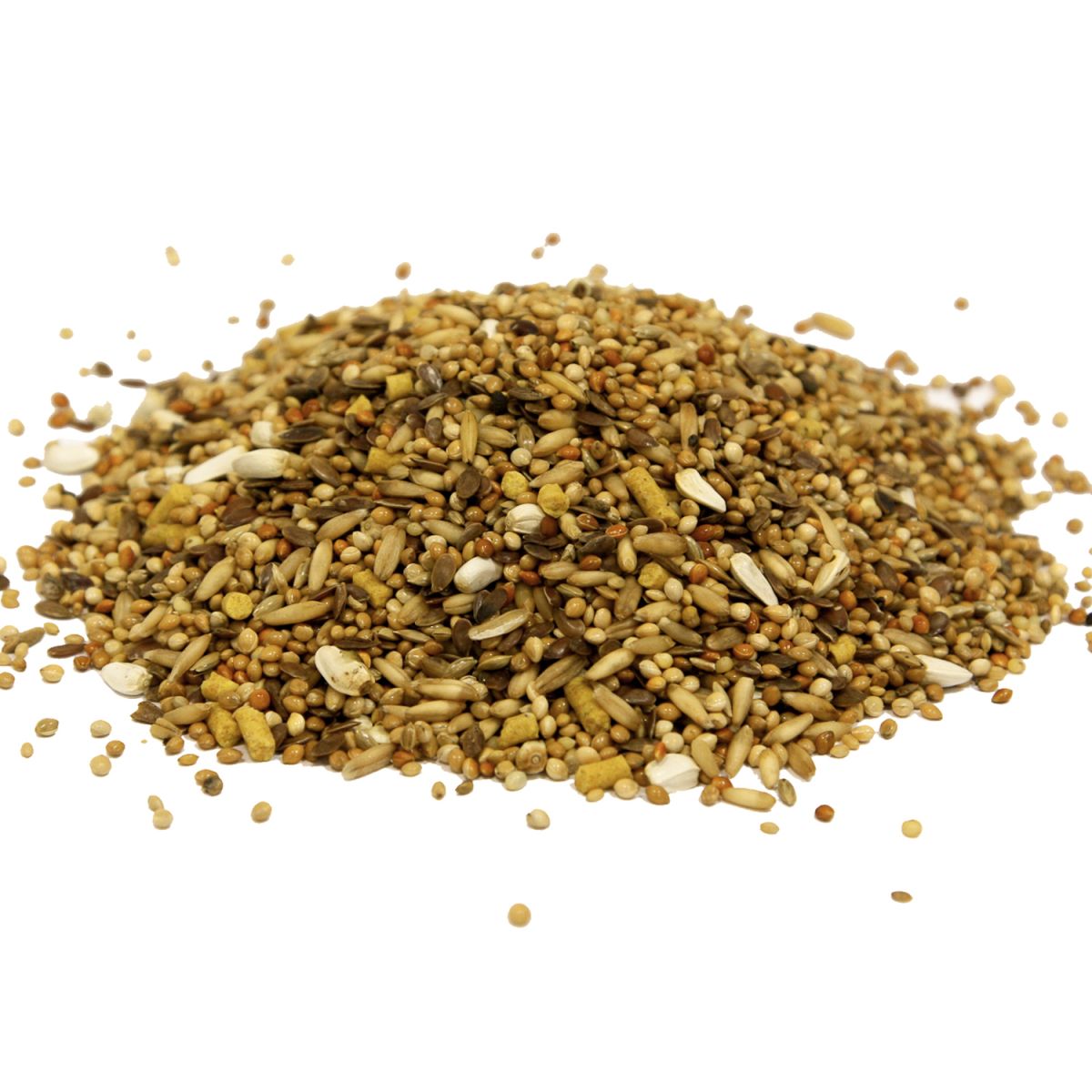 Ингредиенты: желтое просо, белое просо, очищенный овес, лён, просо обыкновенное, просо красное, канареечное семя, гранулы (пекарные продукты, злаки и зерновые продукты, мёд 10%, масла, экстракт Юкки Шидигера, натуральные красители и антиоксиданты, о