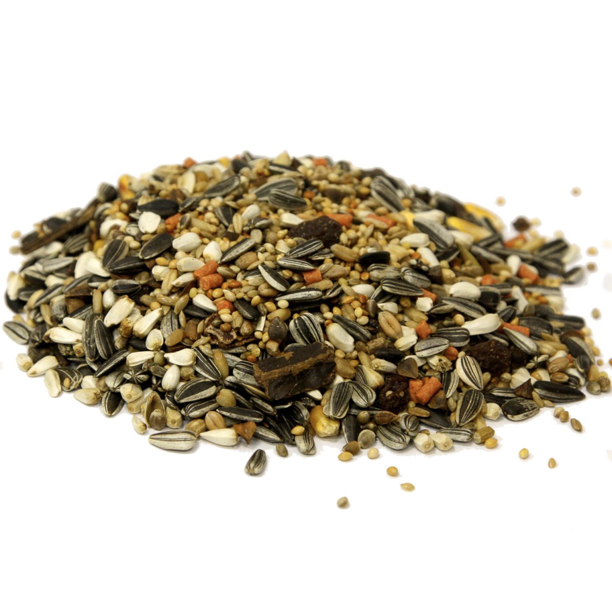 Семена: подсолнечника полосатые, просо желтое, сафлор, просо белое, канареечник, пшеница, просо красное, кукуруза, гречиха, очищенный овес, гранулы (пекарные продукты, злаки и зерновые продукты, мёд 10%, масла, экстракт юкки Шидигера, красители и ко