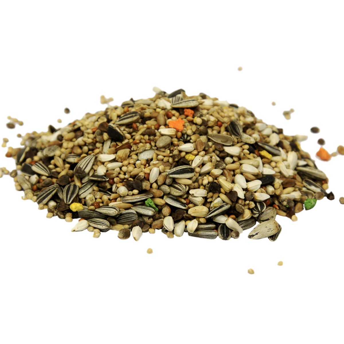 Зерновые продукты; семена: подсолнечник полосатый, гречка, канареечник, конопля, пекарные продукты.Ингредиенты