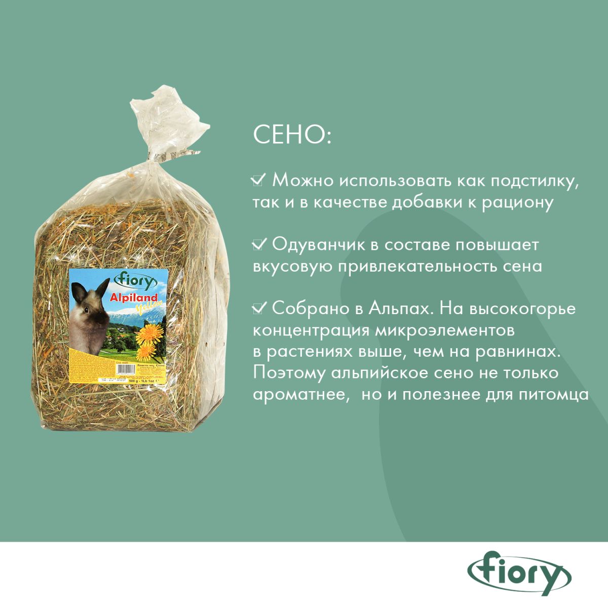 Читать все статьиFIORY сено Альпийское с одуванчиком 500 г