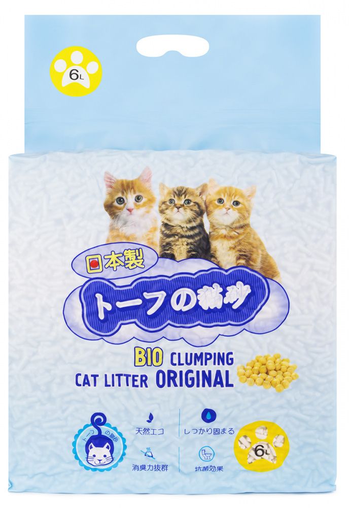 «Тофу» - спрессованная масса из соевых волокон, которые впитывают большое количество влаги. Волоконная структура обеспечивает качественное соединение гранул, образуя комок и блокируя запах внутри, а натуральные отдушки придают мягкий аромат. Использованный наполнитель можно выбрасывать в унитаз.