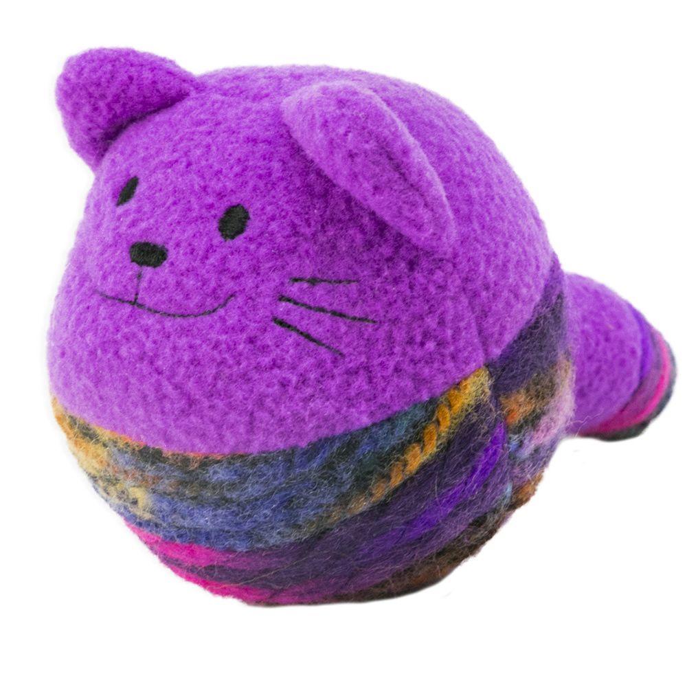 KONG Yarnimals - шарообразная игрушка для кошек в виде котика, которую можно катать сколько угодно! Погремушка внутри подогревает интерес к игре, а североамериканская мята в составе улучшает настроение вашего любимца. Мягкий текстильный материал игрушки легко таскать и приятный на ощупь.