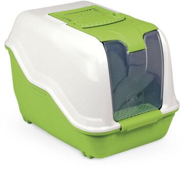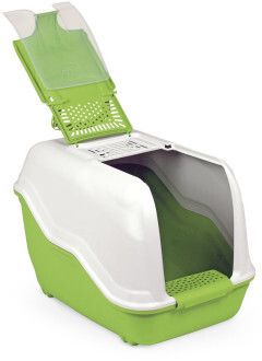 В отличие от обычных лотков био-туалет Netta имеет специальный фильтр, который быстро нейтрализует неприятные запахи, дверцу, через которую питомец легко попадает внутрь, а также совок для уборки. Совок удобно закреплен на внутренней стороне крыши туалета. Удобный отсек на крыше туалета позволяет легко проводить его уборку, а перфорированная ступенька уменьшает разбрасывание наполнителя. Наличие ручки облегает процесс транспортировки.
