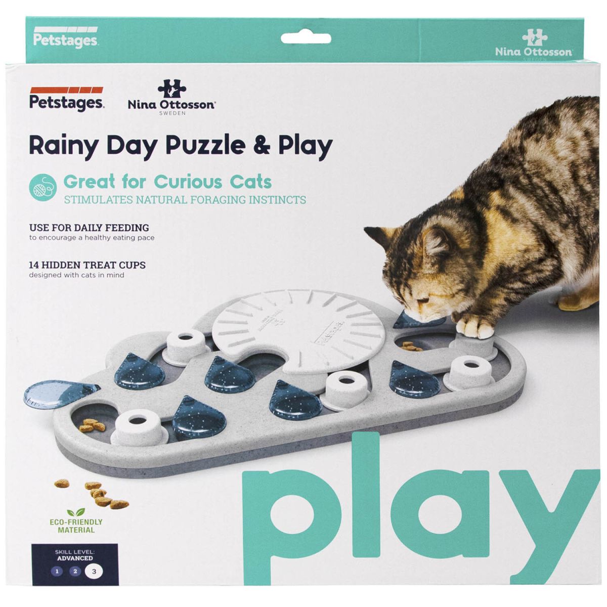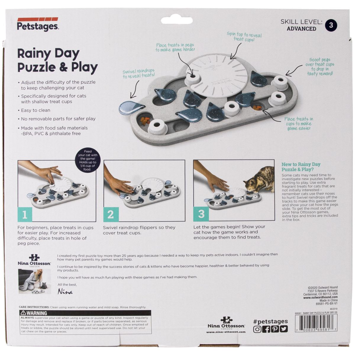 В игре кошка задействует свои охотничьи инстинкты и ум, чтобы добыть лакомства спрятанные в игрушке. Кошка может бить по колышкам и поворачивают капли дождя, чтобы открыть 14 скрытых отделений для лакомств, наполненных вкусностями. Головоломка вмещает до 1/4 чашки еды.