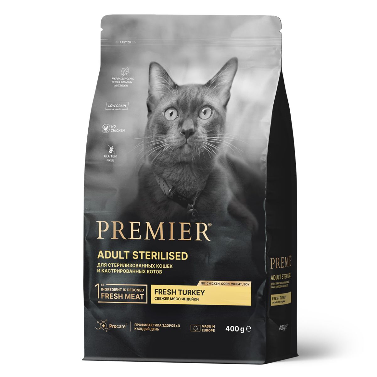 Читать все статьиPremier Cat Turkey STERILISED мясо индейки для кошек 400 г
