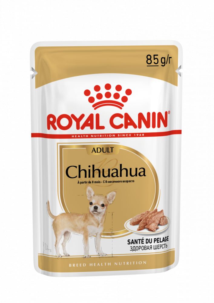 Чихуахуа эдалт: влажный корм ROYAL CANIN® Chihuahua adult паштете, предназначенный для щенков собак породы чихуахуа в возрасте от 8 месяцев, специально разработан с учетом потребностей вашей собаки в питательных веществах. Благодаря особой консистенции ROYAL CANIN® Chihuahua adult в паштете обладает повышенной вкусовой привлекательностью и стимулирует аппетит самых привередливых собак породы Чихуахуа! Нежная текстура корма идеально подходит для Чихуахуа, облегчая процесс усвоения и способствуя оптимальному пищеварению.