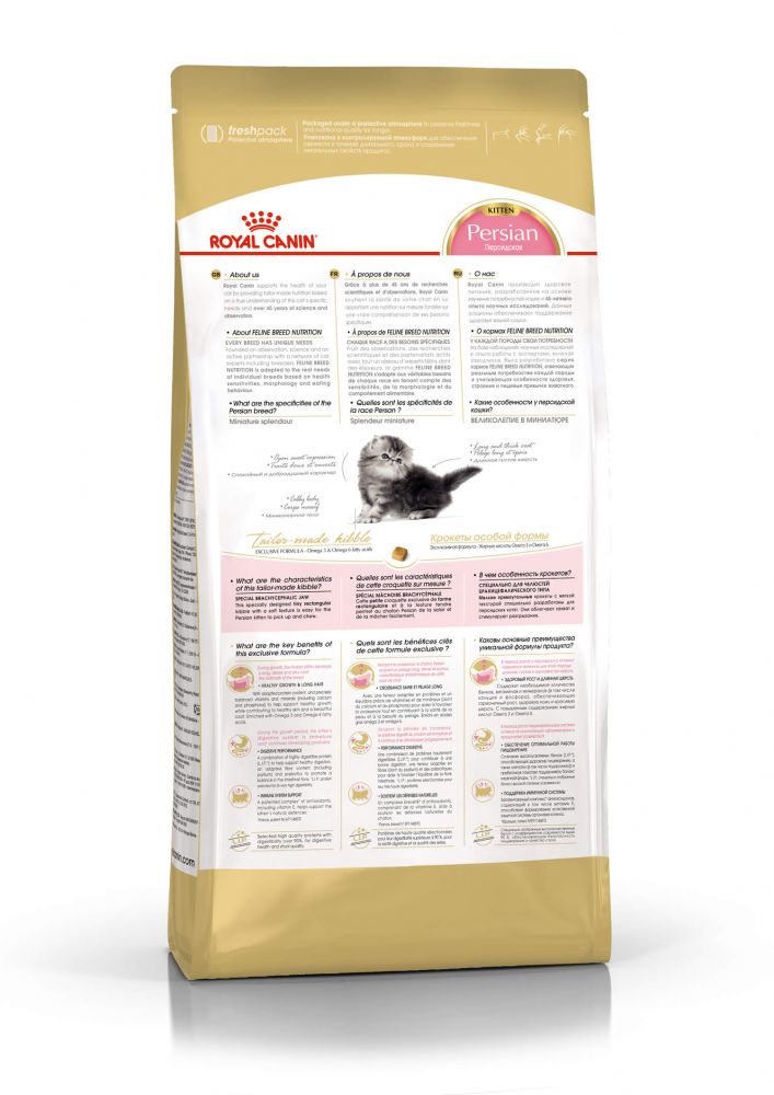 Киттен персиан: сухой корм специально для персидских котят (в возрасте до 12 месяцев). PERSIAN KITTEN содержит белки, обладающие высокой усвояемостью (LIP*), и пребиотики, поддерживающие неокрепшую пищеварительную систему котенка. Комплекс антиоксидантов и других важных питательных веществ способствует формированию здорового иммунитета.