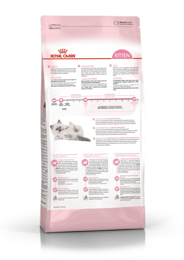 Корм ROYAL CANIN® Kitten предназначен для котят в возрасте до 12 месяцев и обладает повышенной усвояемостью благодаря высококачественным (усваиваются на 90%) белкам L.I.P.