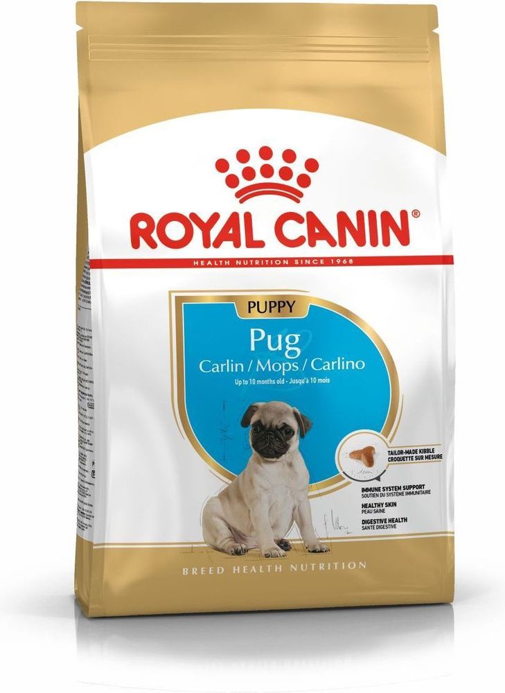 Мопс Паппи: корм ROYAL CANIN® Pug Puppy, предназначенный для собак породы мопс в возрасте до 10 месяцев, специально разработан с учетом их потребностей в питательных веществах. В период роста иммунная система вашего щенка постепенно развивается. Эксклюзивная формула ROYAL CANIN® Pug Puppy содержит комплекс полиненасыщенных жирных кислот Омега-3 ЭПК и ДГК, способствующих питанию кожи и усилению ее барьерной функции, исключительно важной для здоровья кожи вашего щенка.