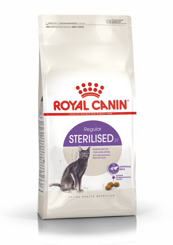 После стерилизации необходимо пересмотреть рацион кошки с учетом изменившихся потребностей в энергии. ROYAL CANIN® Sterilised 37 помогает снизить риск появления избыточного веса, благодаря умеренному содержанию жиров, при соблюдении рекомендуемых норм кормления.
