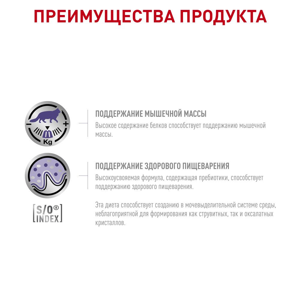 Знак S/O Index на упаковке означает, что диета предназначена для создания в мочевыделительной системе среды, неблагоприятной для образования струвитных кристаллов и кристаллов оксалата кальция.
