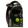 flexi Black Design ленточный поводок-рулетка черно-розового цвета