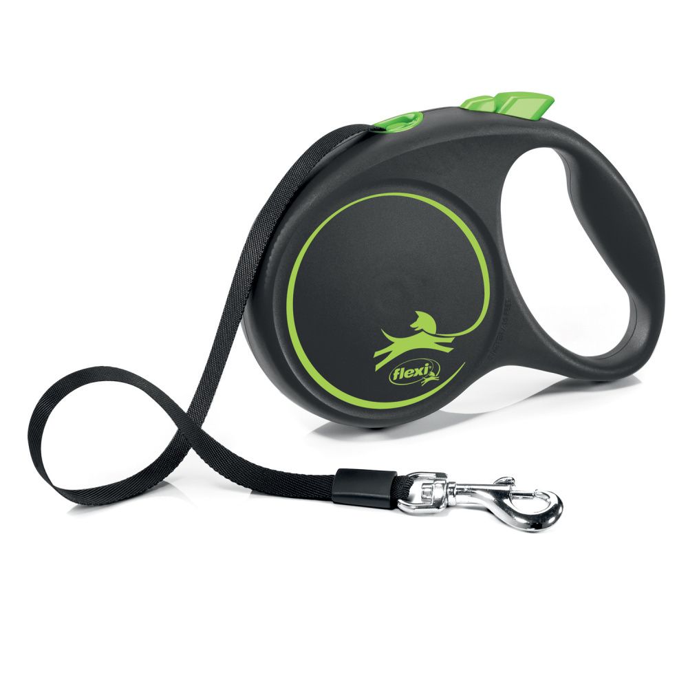 flexi Black Design ленточный поводок-рулетка черно-зеленого цвета