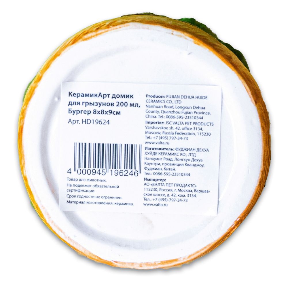 Читать все статьиКерамикАрт домик для грызунов Бургер 8х8х9см (1 шт)