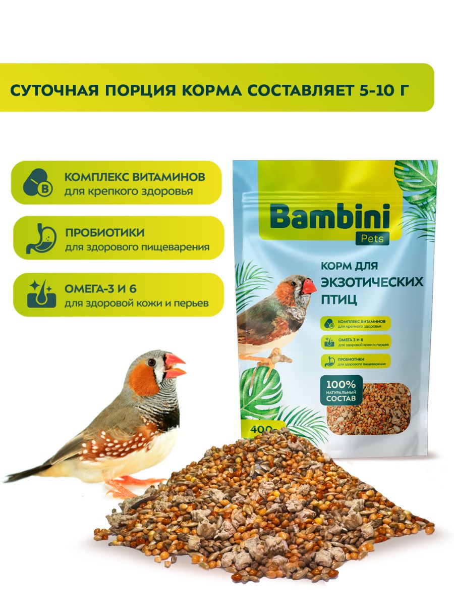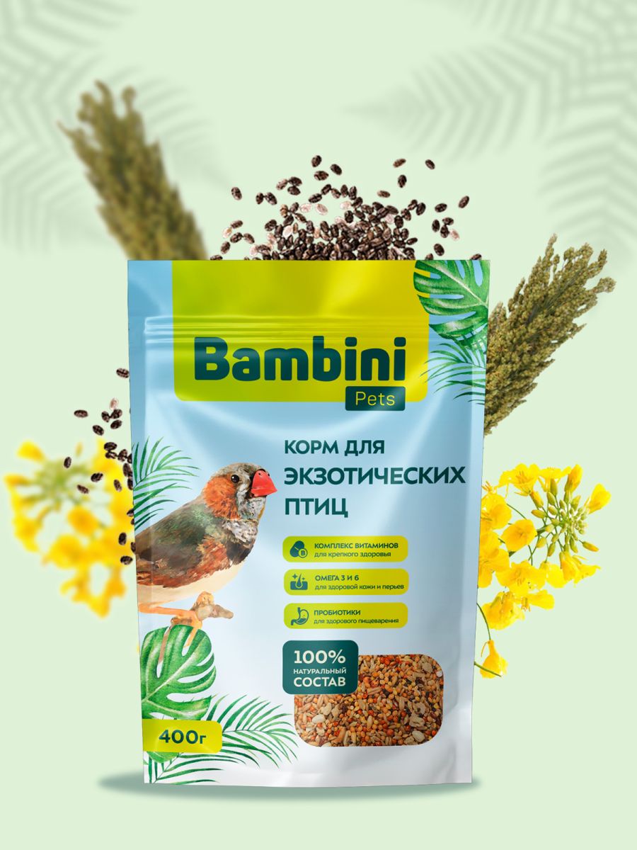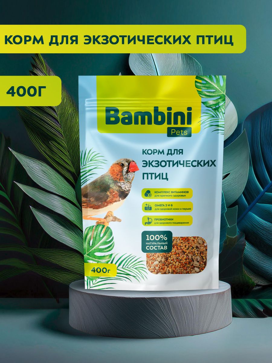 Читать все статьиКорм Bambini Pets для экзотических птиц, 400гр
