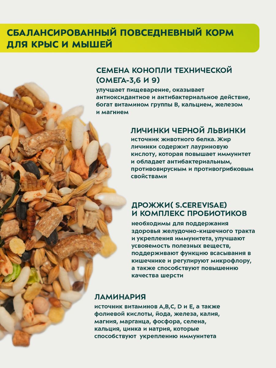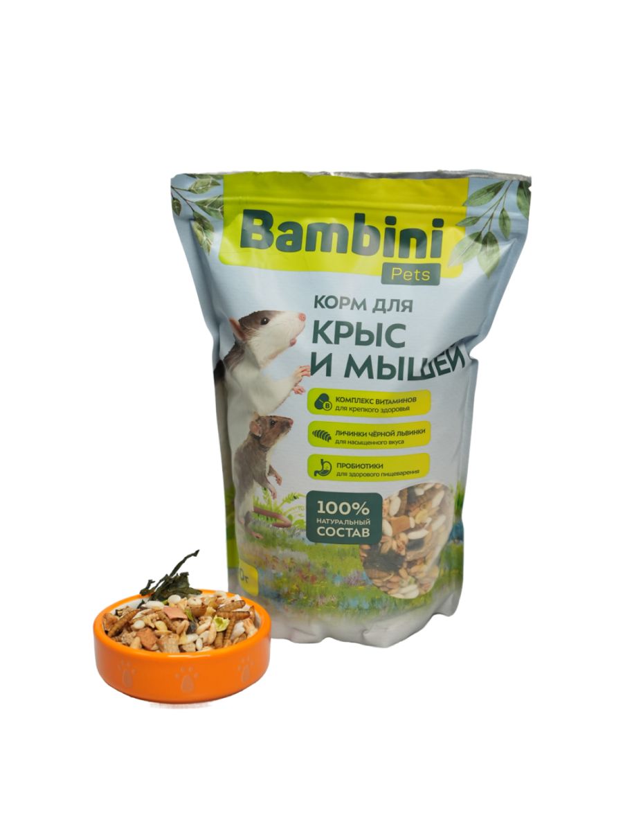Читать все статьиКорм Bambini Pets для крыс и мышей, 800гр