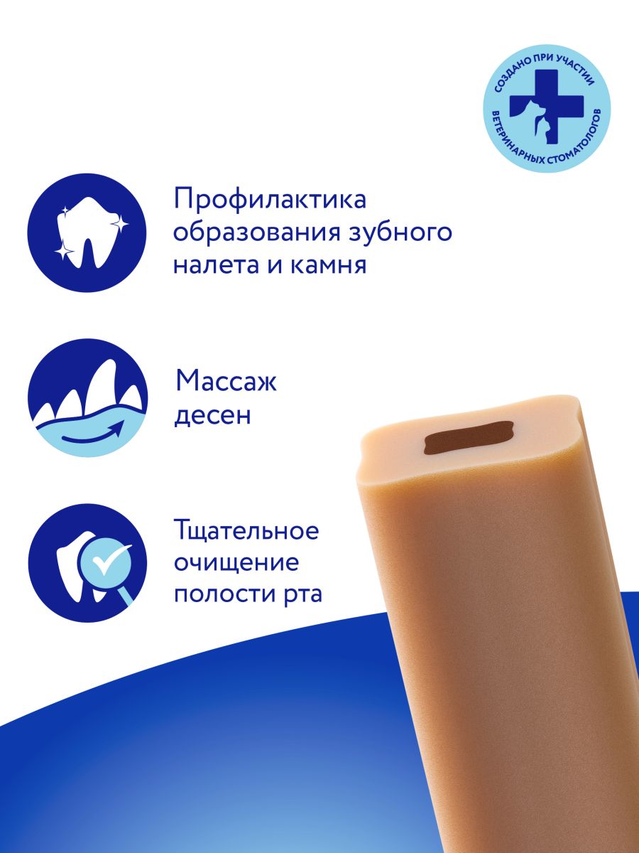 Читать все статьиЛакомство Мнямс ДЕНТАЛ для собак «Зубной снек» с говядиной 95г