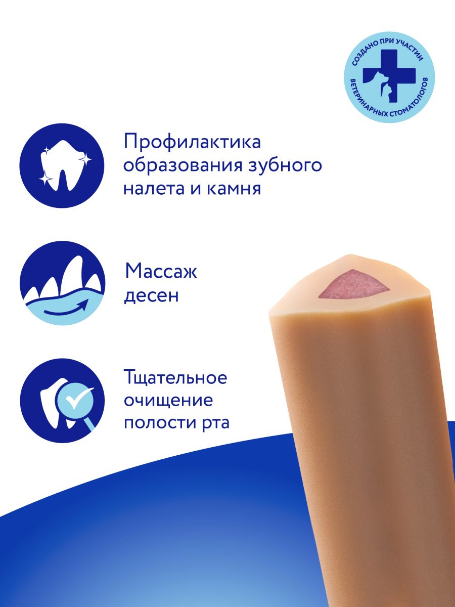 Читать все статьиЛакомство Мнямс ДЕНТАЛ для собак «Зубной снек» с лососем 85г