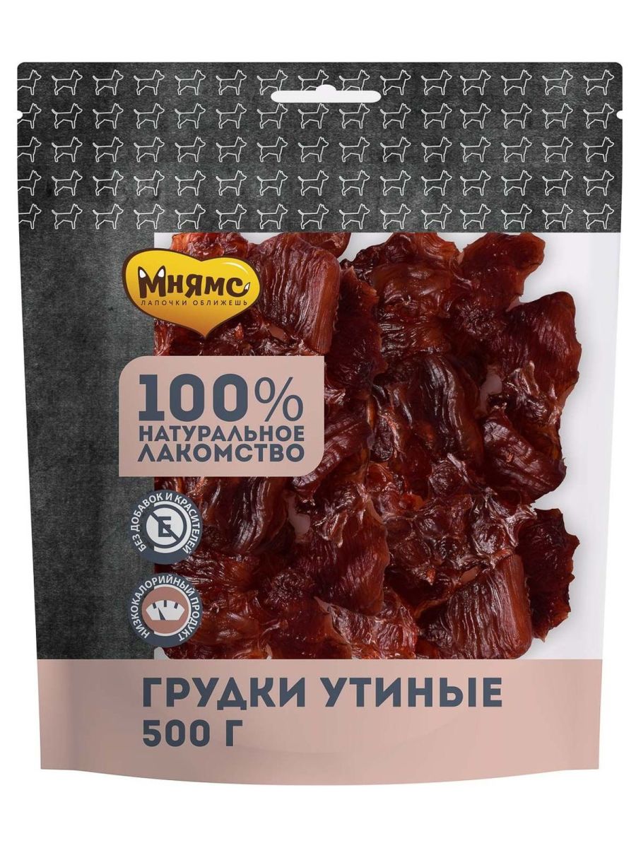 Читать все статьиЛакомство Мнямс для собак Грудки утиные 500г