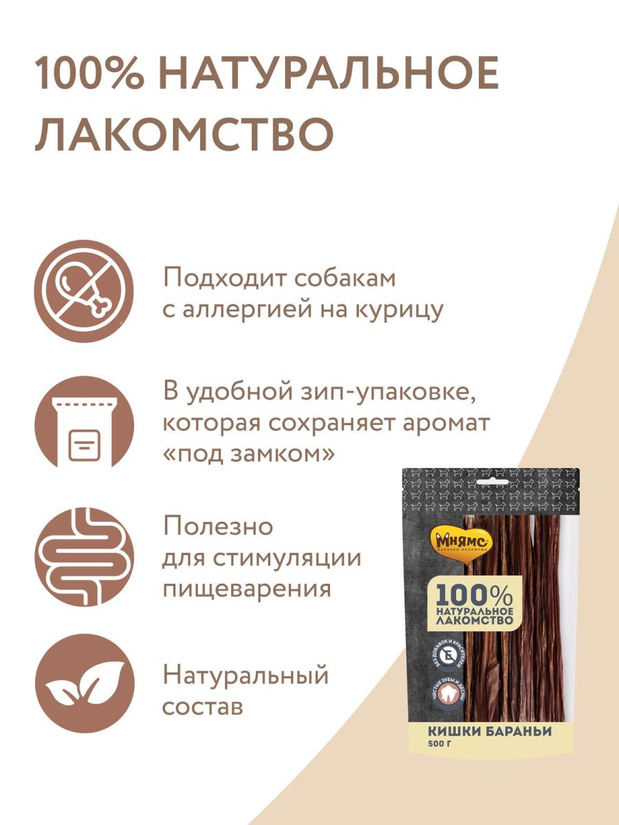 Читать все статьиЛакомство Мнямс для собак Кишки бараньи 500г