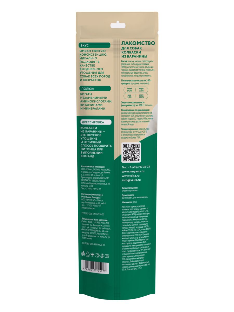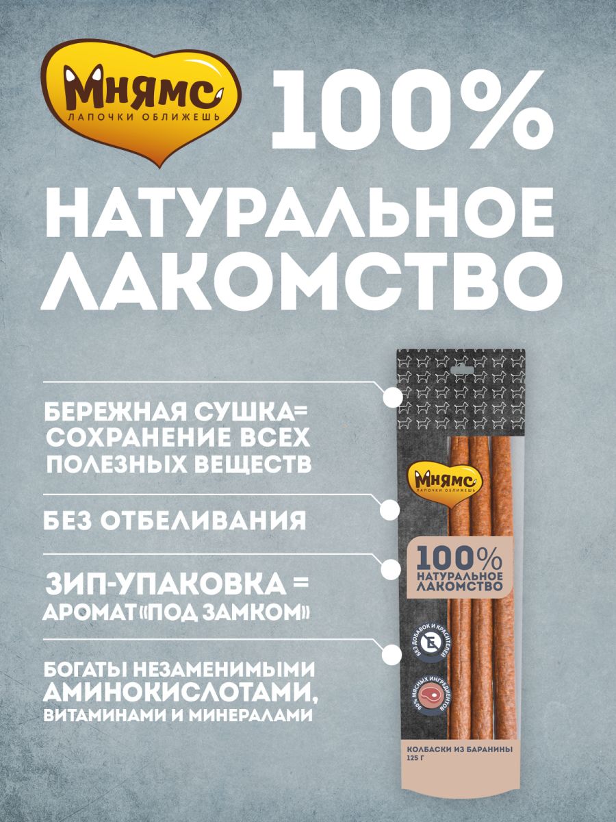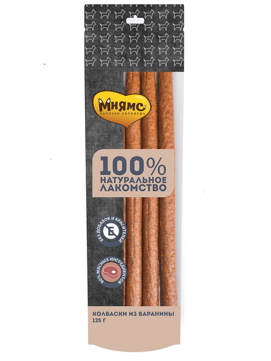 Читать все статьиЛакомство Мнямс для собак Колбаски из баранины 125г