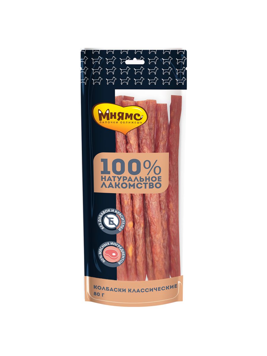 Читать все статьиЛакомство Мнямс для собак Колбаски классические 80г