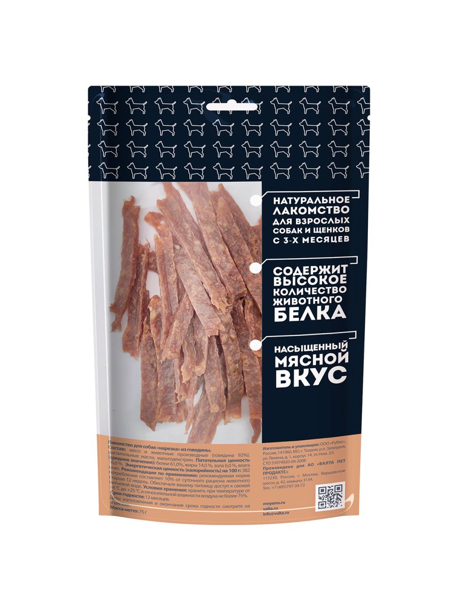 Читать все статьиЛакомство Мнямс для собак Нарезка из говядины 75г