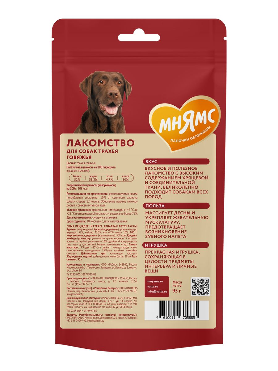 Читать все статьиЛакомство Мнямс для собак Трахея говяжья 95г