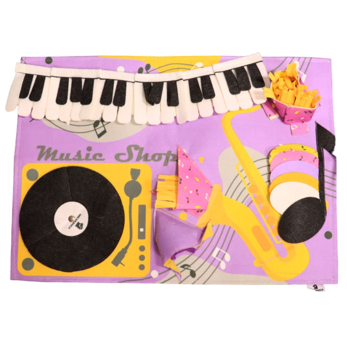 Многофункциональная игрушка для собак нюхательный коврик «Музыкальный магазин». Нюхательный коврик - это уникальная развивающая игрушка, которая содержит комплекс упражнений различной сложности для развития интеллекта собаки. Выполняя упражнения, собака не просто вынюхивает любимый корм или лакомство, но и думает, как заполучить желаемую награду, что стимулирует развитие интеллектуальной деятельности. Способствует решению проблем с ЖКТ, а также выполняет функции анти-стресс игрушки. Произведено с использованием гипоаллергенных материалов. Уход: ручная стирка при температуре 40°С.